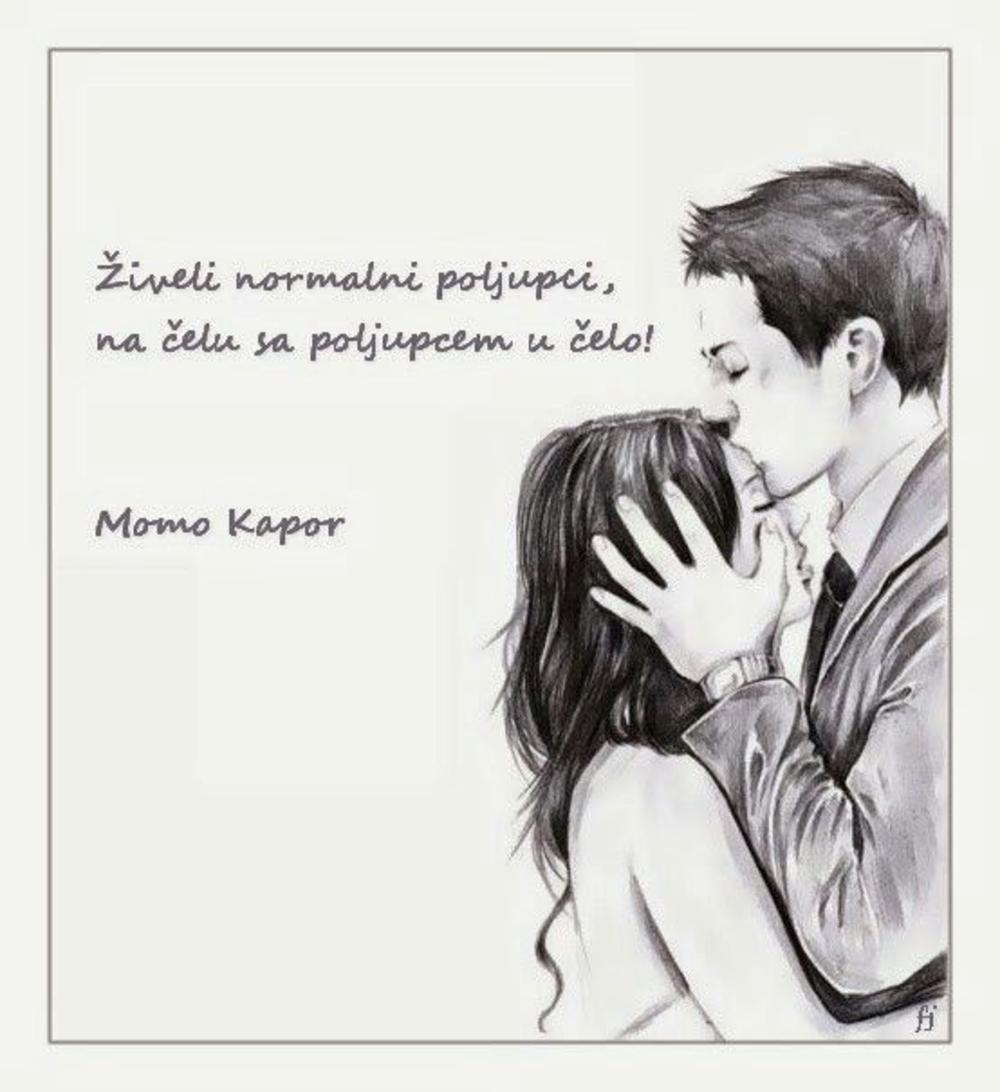 4. Moma Kapor. Citati iz gotovo svih njegovih dela su jednako dopadljivi i teško je izdvojiti one koji su najpopularniji. Moma je jednostavno multipraktik mudarac za ljubavne veze, piće, kafanu, hranu, pejsaže, Beograd, lutanja, putovanja, životno iskustvo, godišnja doba, slavne ljude... Ipak, ima jedan citat koji se šeruje za nijansu više od ostalih, a to je vrlo kratka rečenica: "Živeli normalni poljupci, na čelu sa poljupcem u čelo!".