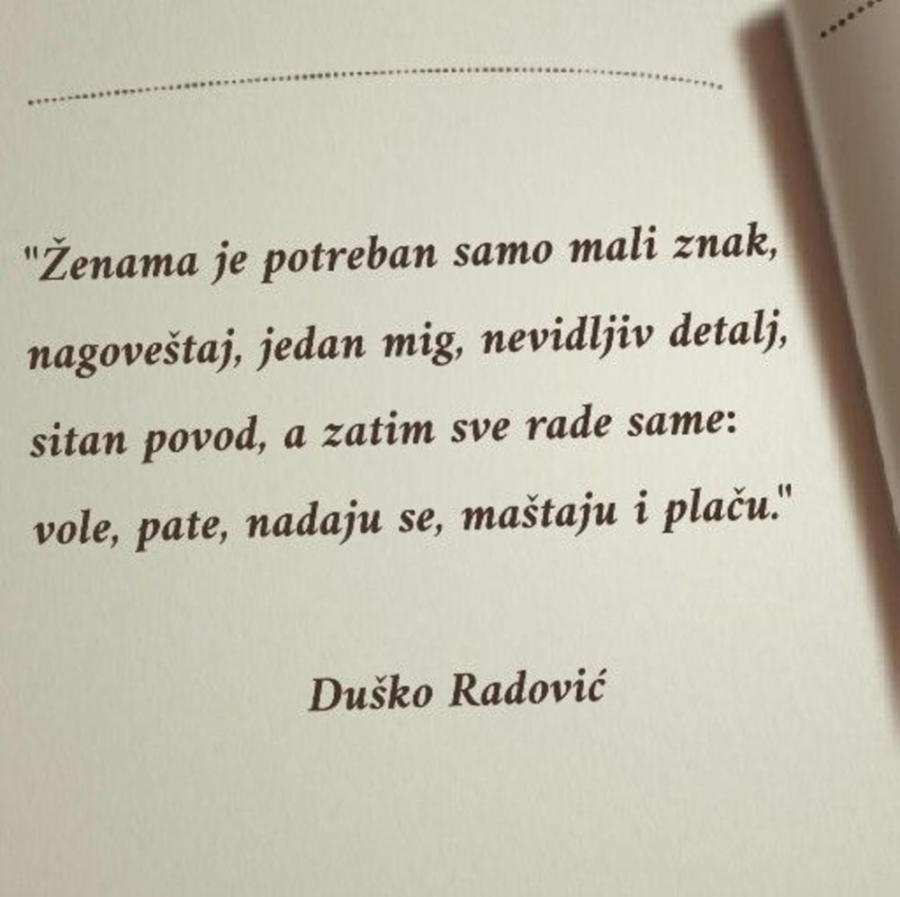 2. Duško Radović. Deluje kao da je njegov rad bio stvoren za citiranje. Maltene svaka njegova rečenica zvuči kao prvoklasna mudrost začinjena sa mnogo prefinjenog humora. Citira se u svim prilikama i raznim povodima. Ovde mi mogli da izvučemo na desetine citata i svaki bi konkurisao za titulu najcitiranijeg i najšerovanijeg. Ipak, statistika kaže da se najviše rabi ovaj: "Tucite svoju decu čim primetite da počinju da liče na vas".