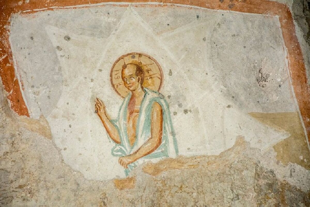 Ono zbog čega je značajna u istoriji hrišćanske umetnosti nalazi se na severnom zidu pećine: u pitanju je freska na kojoj se nalazi prikaz Isusa Mladenca kao mladog muškarca bez kose.