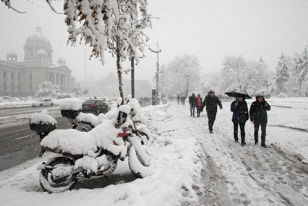 Uveče i u toku noći, kao i sutra ujutro (09.01.) u pojedinim delovima Beograda očekuje se mestimično kiša koja će se zbog niske temperature lediti na tlu", navodi se na sajtu RHMZ.