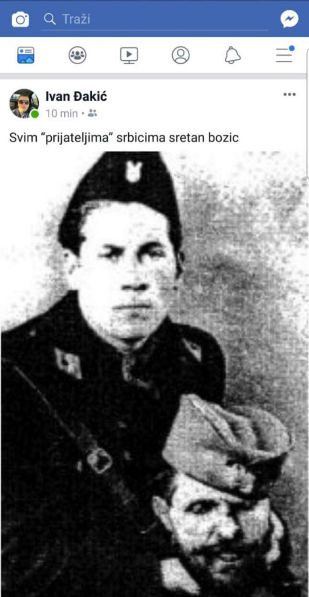 Ivan Đakić, sin poslanika u hrvatskom parlamentu, Josipa Đakića, koji je na Fejsbuku, na dan pravoslavnog Božića, objavio skandaloznu fotografiju ustaše koji u ruci drži obrubljenu glavu Srbina, proveo je noć u pritvoru i očekuje se da danas bude ispitan u virovitičkom tužilaštvu.