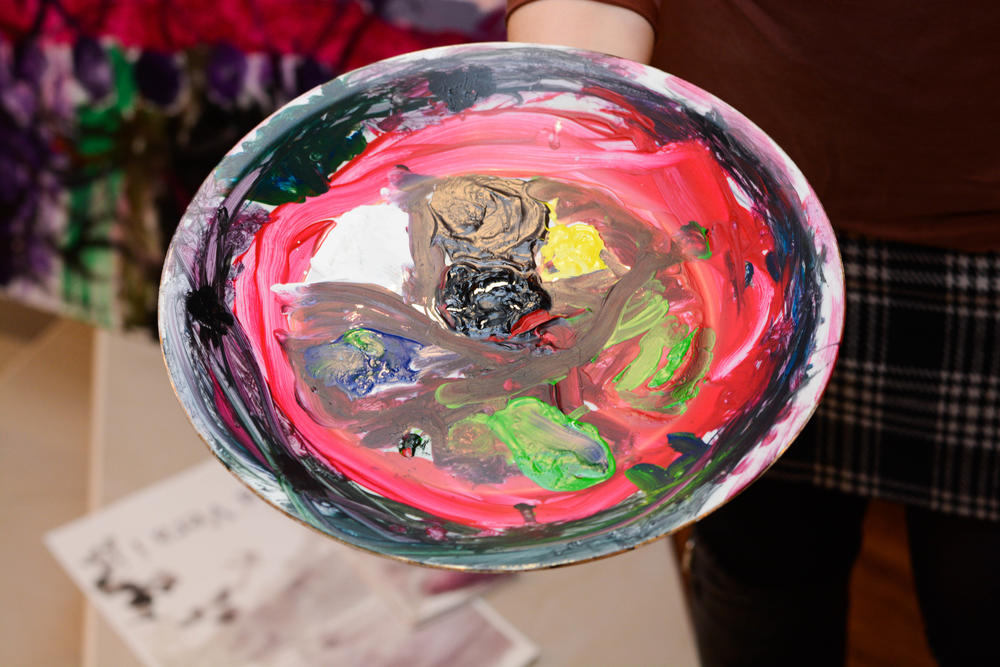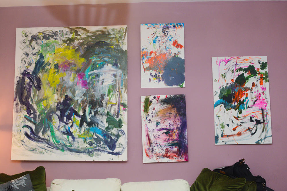 Vera ne slika samo četkicom, već i rukama i nogama, a u stanju je da slika bez prekida po ceo dan - kaže Ljiljana dok pokazuje platno, drvo, medijapan, staklo, papire, platna, tanjire na kojima njena ćerka slika.