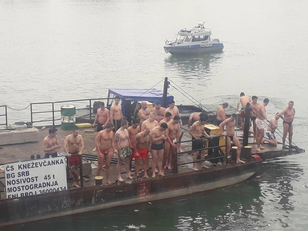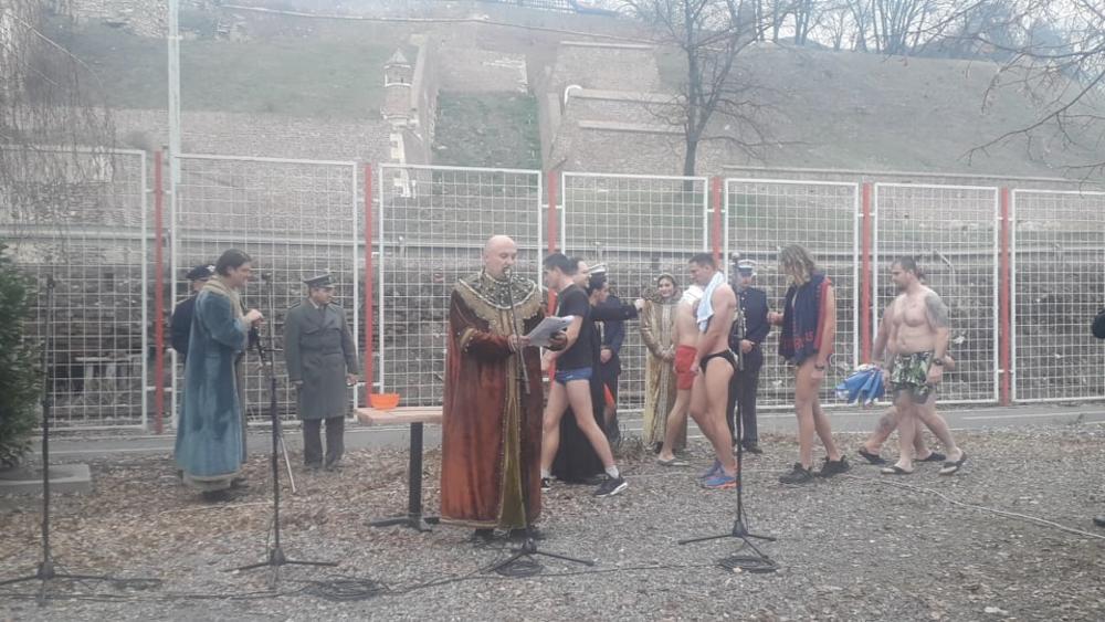 ONI SU DANAS PLIVALI ZA ČASNI KRST: VITEZOVI skočili u LEDENU reku podno Kalemegdana (FOTO)