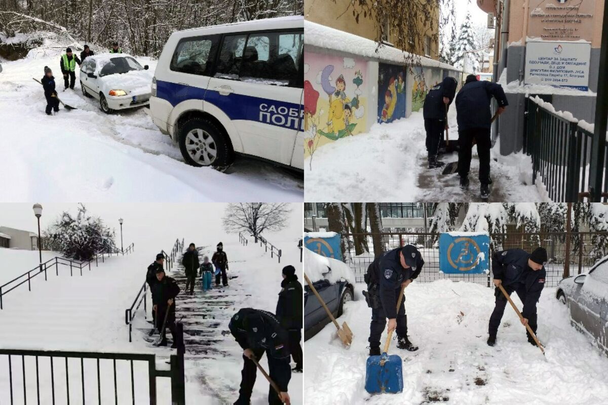 Takođe, policijski službenici su se sami organizovali da očiste sneg ispred pojedinih bolnica, domova zdravlja,škola i brojnih drugih ustanova. Tako su, između ostalog, snežni nanosi očišćeni ispred prostorija Saveza slepih i slabovidih, Centra za porodični smeštaj i usvojenje, zatim Centra za smeštaj i dnevni boravak dece i omladine ometene u razvoju u Lazarevcu, kao i dva centra za zaštitu odojčadi, dece i omladine.