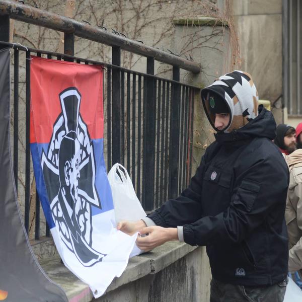 Skup povodom godišnjice smrti predsednika srpske vlade za vreme okupacije u Drugom svetskom ratu, Milana Nedića, u centru Beograda održao se danas u 11h na uglu ulica Simine i Kneginje Ljubice.