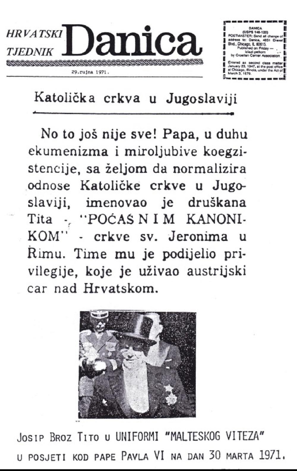 Verovali ili ne doživotni predsednik SFRJ Josip Broz Tito bio je počasni kanonik poglavara Rimokatoličke crkve - Pape, a sahranjen je kao pripadnik tajnog vatikanskog reda piligrinskih fratara, poklonika Svete Gospe Fatimske.