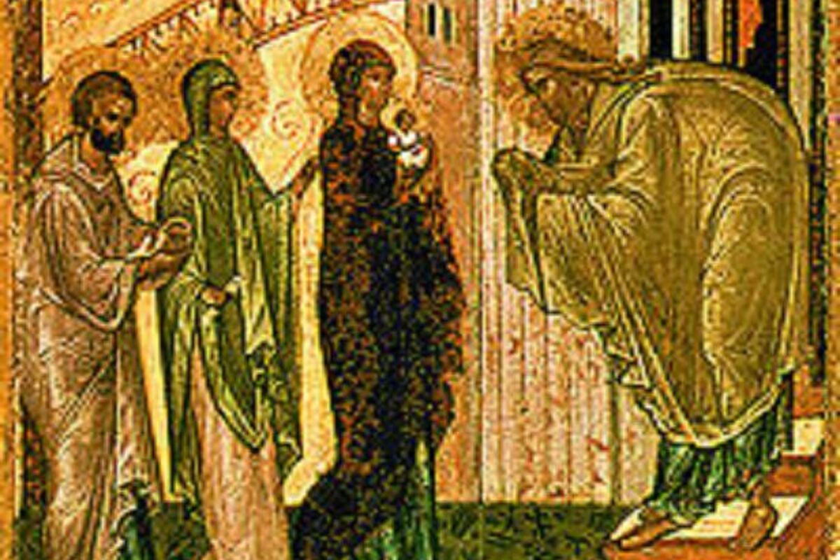 Kada je Djeva Marija donela Isusa u jerusalimski hram, Duh Božji je to javio Simeonu, koji je tada bio već veoma star. Simeon brzo ode u hram i u hramu odmah prepozna i Djevu i sina po svetlosti koja je zračila oko njihovih glava kao oreol.