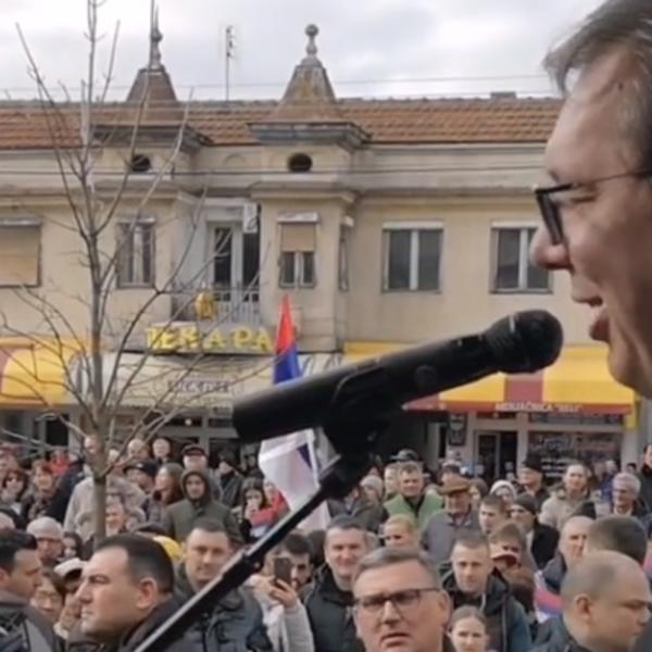 Vučić se posle obilaska doma zdravlja obratio građanima okupljenim ispred i zahvalio im se na tome "što veruju, što su podneli teške mere, zahvalio im se za ljubav i zamolio ih da krenu kući, da ne kisnu i ne smrzavaju se, a onda je sa bine sišao među okupljene.