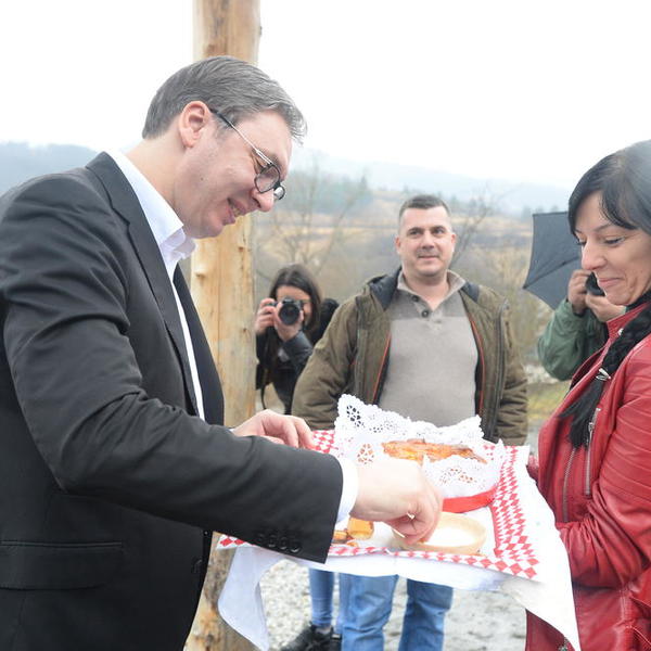 "Imamo u Prištini ljude koji se ponašaju neodgovorno, nisu ispunili što piše u Briselskom sporazumu, jedinu obavezu, Zajednicu srpskih opština. A, posle toga uveli su takse od 100 odsto na srpsku robu želeći da unište srpski narod na KiM, da ga proteraju sa svojih vekovnih ognjišta, ali i da nanesu ekonomsku štetu Srbiji. Mi tu štetu možemo da istrpimo, ali nećemo odustati od nacionalnih i državnih interesa", naglasio je predsednik.