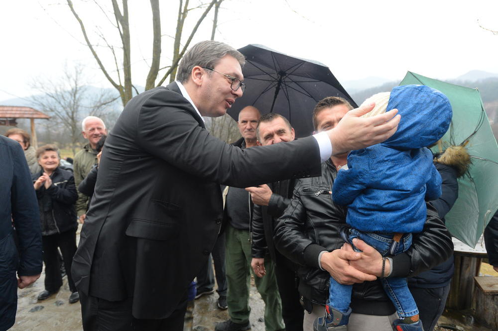 Vučić je dočekan tradicionalo, uz hleb i so, a nakon što se rukovao sa okupljenima, prišao i pomilovao malog Andreja, starog 19 meseci, kojeg je jedan od meštana držao u naručju.