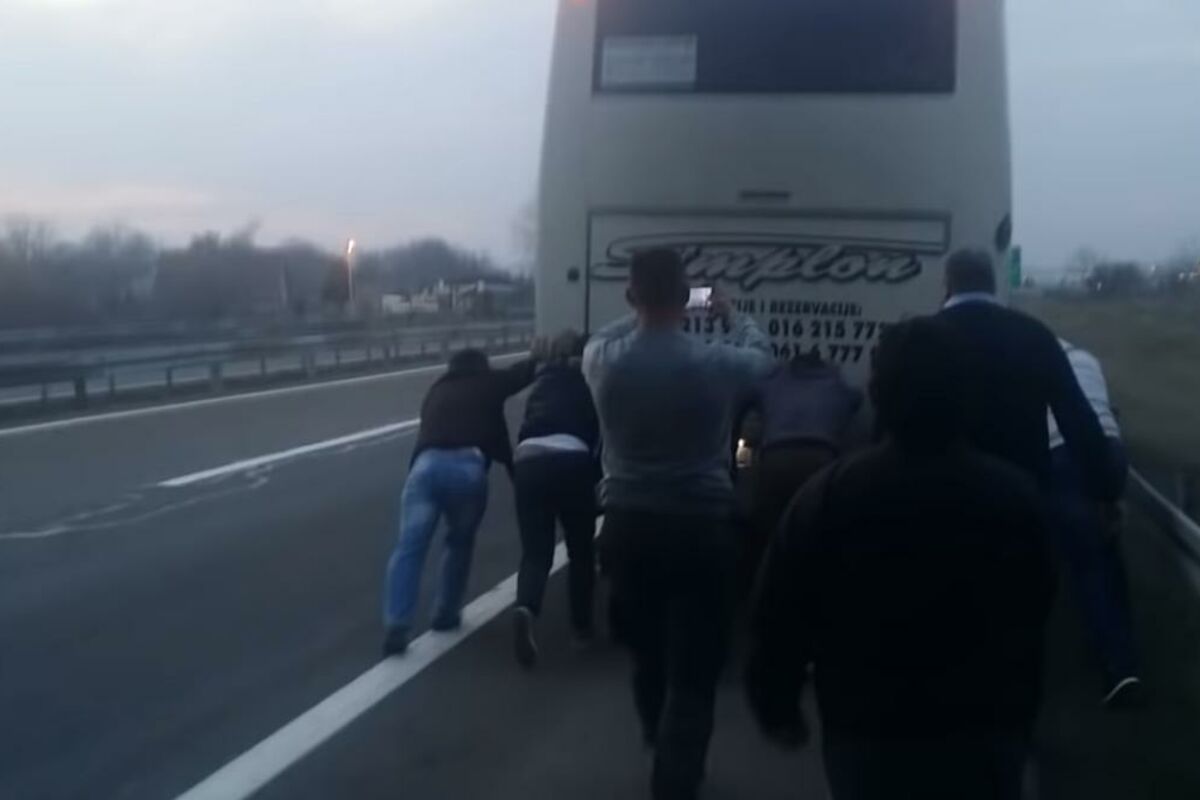 Na auto-putu Niš-Beograd putnici su juče, u smeru ka Beogradu, a kod skretanja za Jagodinu, gurali "Simplonov" autobus koji se - pušio.