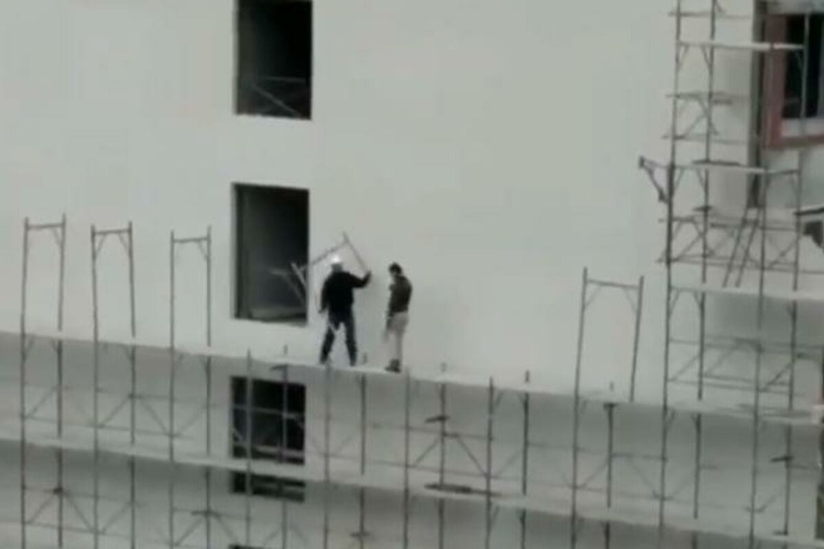 Kako se može videti na snimku, tako obučeni, kolege delove montažne skele sa jednog na drugi deo zgrade, ostavljajući sugrađane iz okolnih zgrada, mnoge na Tviteru, a i nas - u šoku i neverici.
