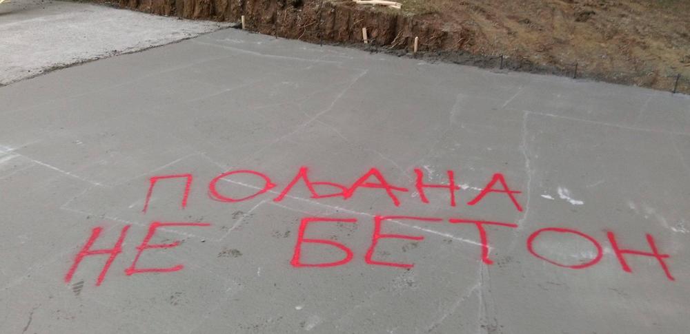 Na izbetoniranom delu gradilišta ostale su poruke ispisane sprejem „Poljana, ne beton’’, „Smrt kapitalizmu’’ i „Priroda narodu’’.