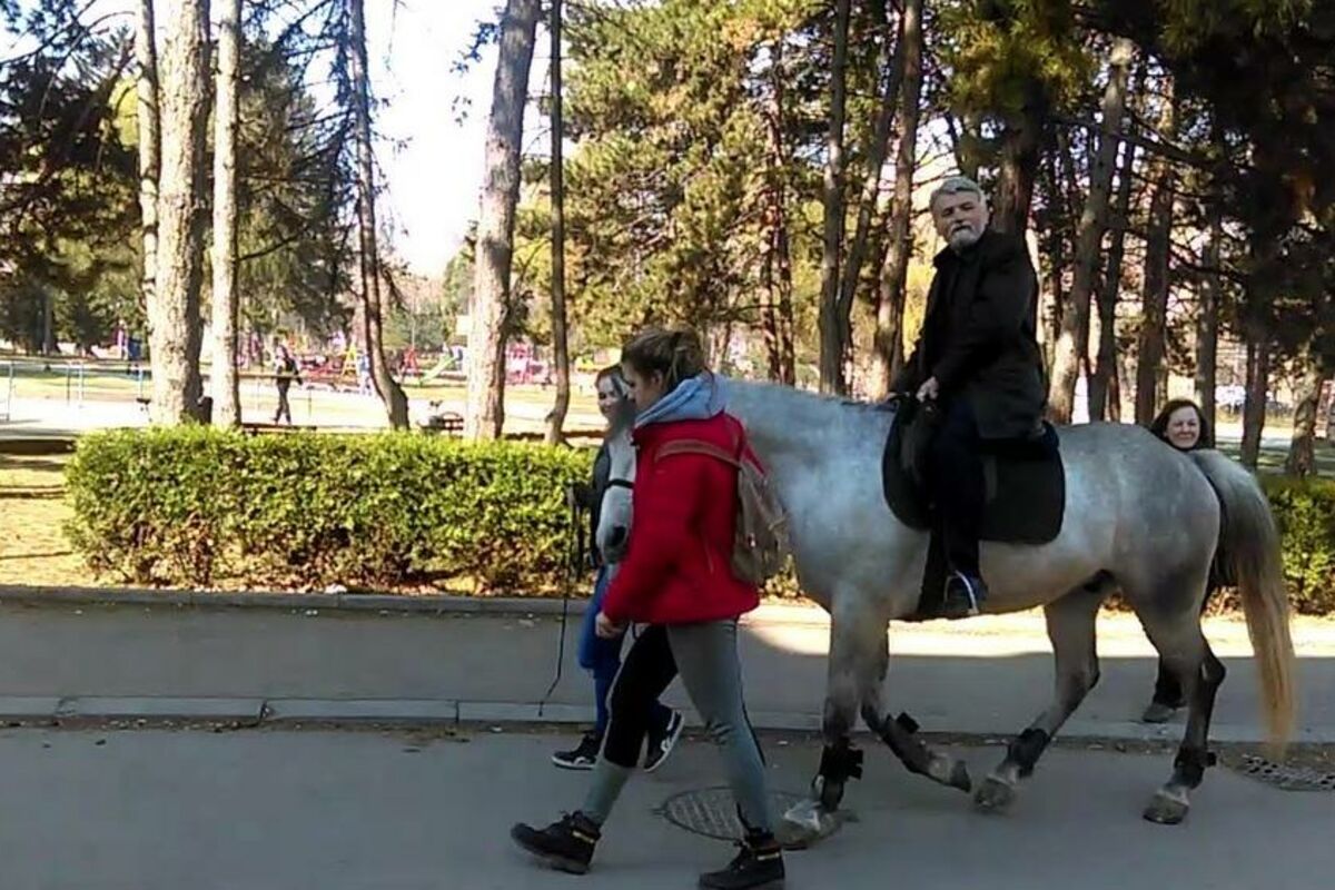 On kaže da danas nije izveo svojevrsni performans nego je samo ispunio obećanje koje je nekada dao rukovodstvu Sportskog centra "Čair", a to je da će se "na belom konju vratiti na svoje radno mesto".