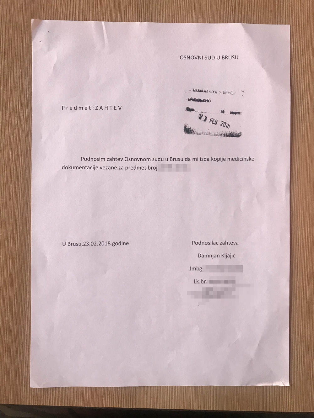 - Rečeni mi je da je sve to kao otišlo Ministarstvu zdravlja. Nakon toga sam se obratio Republičkoj inspekciji zdravstva, a oni su nam odgovorili da se Živorad uredno javljao datuma 22. marta 2016. godine. I to nije sporno. Ja sam tražio da se veštači potpuno drugi datum, za koji se ne zna da li je 16. ili 18. mart. Oni uopšte nisu obratili pažnju na taj datum koji je prepravljan, kao ni na to da u nastavku nema potpisa lekara, ni pečata. Ja sam ponovo poslao molbu, gde sam zamolio da se ne veštači datum koji je očigledan, već ovaj koji je sporan - objašnjava Kljajić.