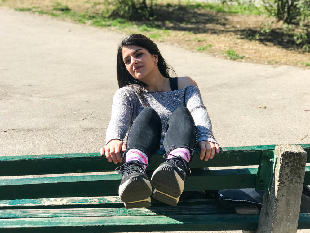 Danas sam obukla dve potpuno različite šarene čarape. Na svoje već dovoljno šarene patike. I moderne "pocepane" farmerke, čiji su končići visili skoro do patika.