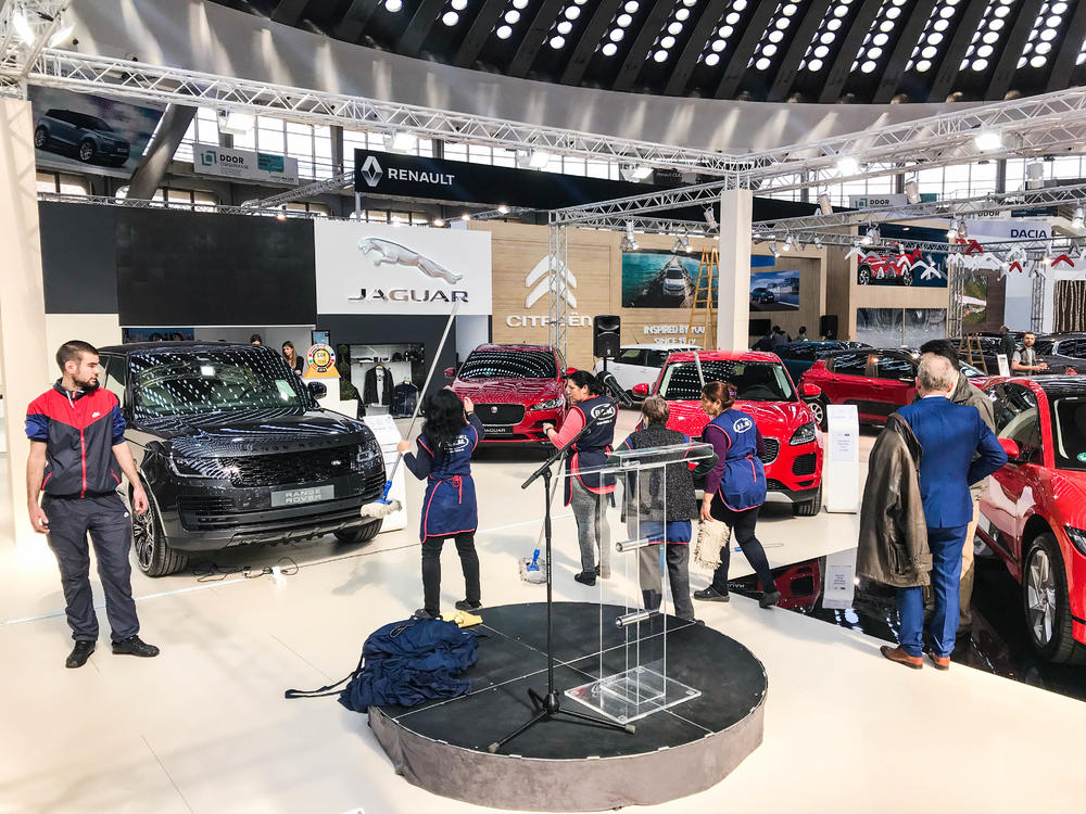 Zatim, obezbeđenje zauzima svoje pozicije na štandovima i oko njih, vodi se računa o tome da niko ne ošteti auto koji je iz fabrike došao pravo u jednu od hala na beogradskom sajmu.