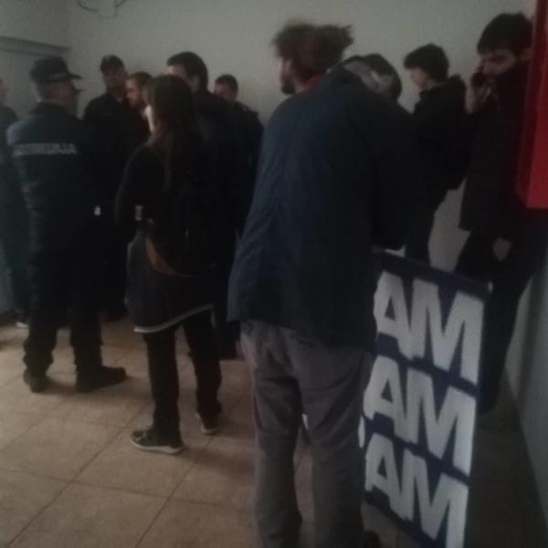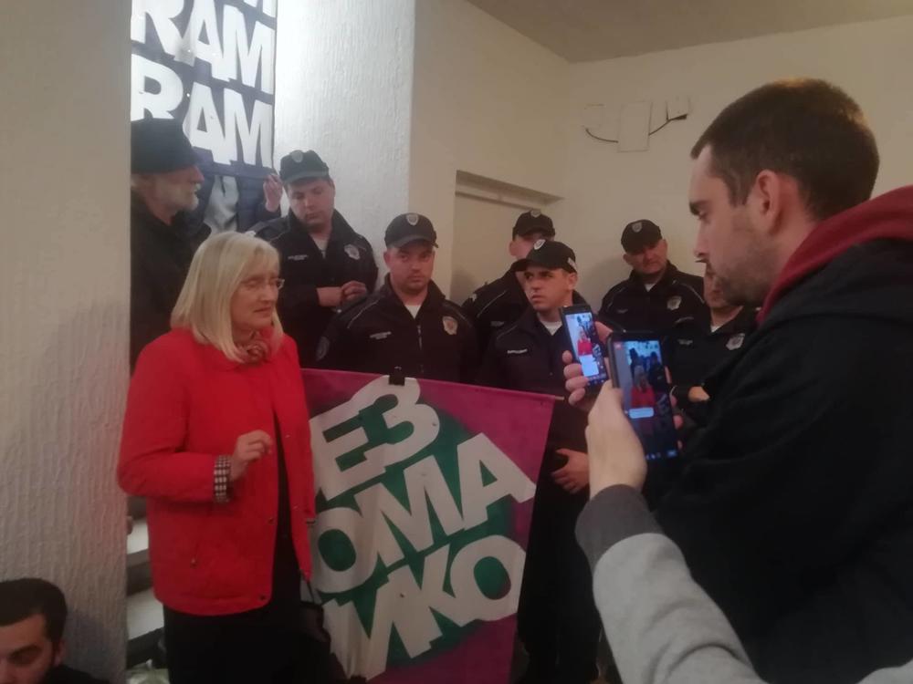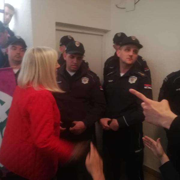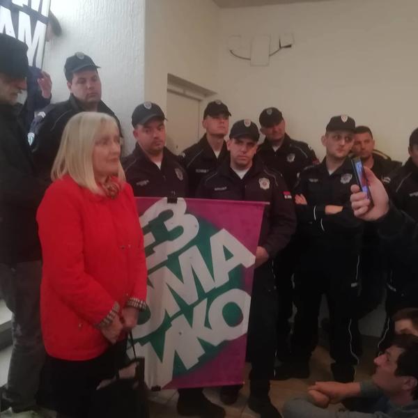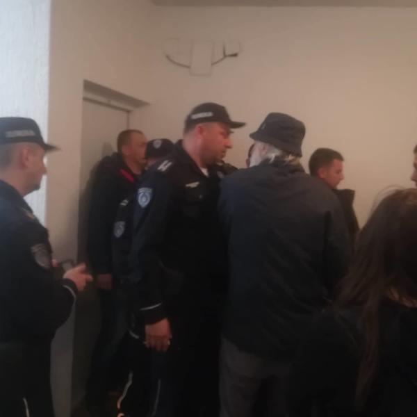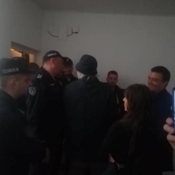12.50- Trenutno su pored stana seli prisutni građani dok ispred njih stoji policija koja nikome ne dozvoljava da prođe.