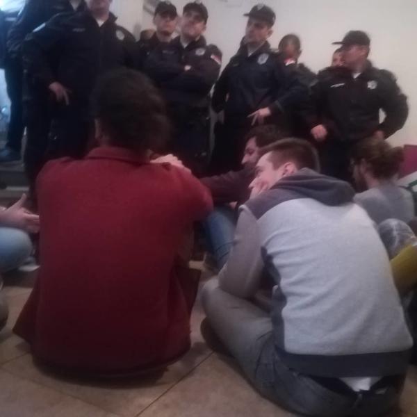 11.05- Policija je poslala pojačanje i bukvalno je došlo do okršaja, a aktivsti kažu da po zakonu mora neko da nadgleda izvšenje.