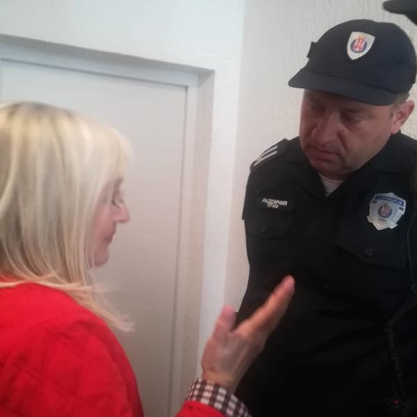 13.26 Snežana pokušava da uđe u stan i upravo razgovara sa policajcem i traži da joj pruži policijsku pomoć, međutim policajac je otišao nakon razgovora sa njom.