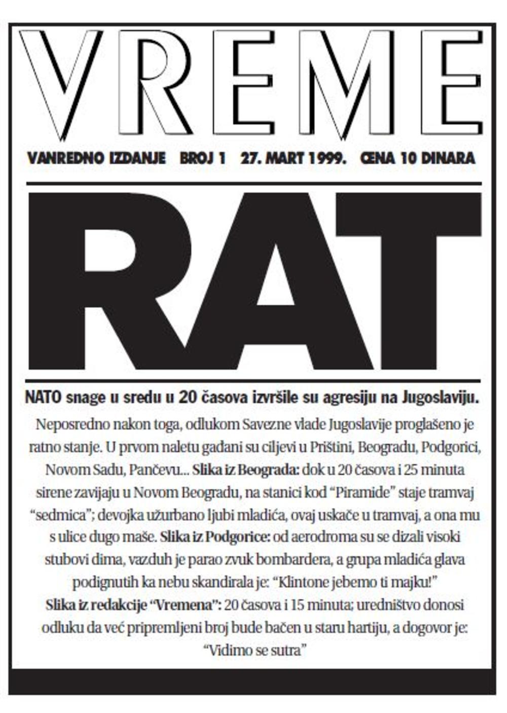 Moja baka, koja je u tom trenutku već bila dve godine pokojna, a ja tada živeo u njenon stanu iz kojeg još uvek nije izlapeo njen miris, godinama nam je pričala kako je Klinton isti kao Hitler i kako će nas jednog dana bombardovati, a mi smo joj se smejali.