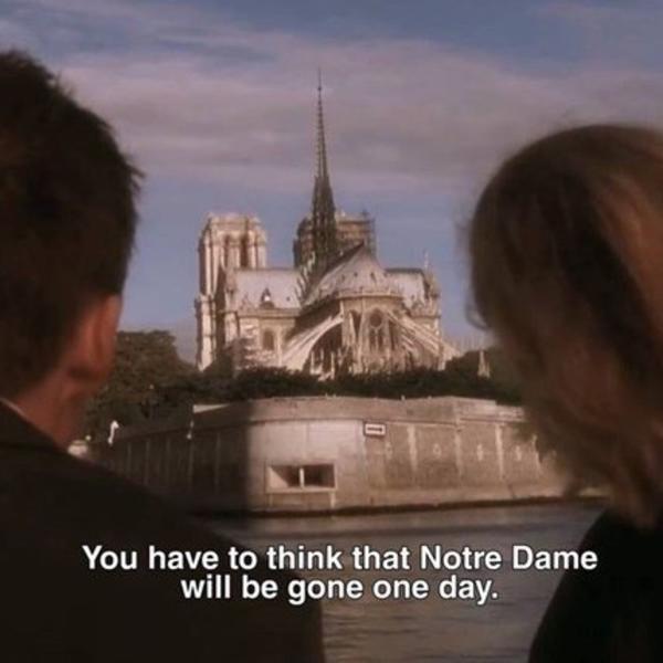 "Oni koji su retki, ali koji postoje i koji se raduju i likuju zbog toga, rekao bih da se oni ne raduju tuđoj nesreći, nego svojoj nesreći. Jer, Notr Dam nije samo Francuska baština, to je i evropska baština, to je hrišćanska baština. To je baština svih ljudi na svetu koji sebe smatraju ljudima. To je ono što je otišlo juče.. 800 godina istorije, 800 godina kulture i hrišćanstva. Nisu oni koji su učestvovali u bombardovanju Srbije nisu izgradili Notr Dam, niti se molili u toj crkvi, niti to rade danas, niti će sutra. Ali mi koji smo bili protiv toga, molimo se u njoj i molimo se za nju. I verujem da su oni koji su izgradili taj dragulj Evrope, koji su otšli pre sada 8 vekova, sigurnan sam da se slažu sa mnom, a ne sa njima. Tako da, nemojte da likijute. I hvala svima, hvala ogromnoj većini koja tuguje sa nama, jer danas jeste tužan dan. Ne samo za Farncuze, nego i za Evropljane i sve ljude na svetu koji imaju osećaj za lepotu i za ono što nas prevazilazi kao ljude", završio je Gujon.