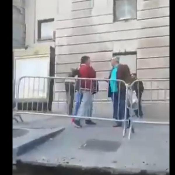 Nakon okončanja još jedne blokade radova na Trgu Republike došlo je do incidenta u blizini Narodnog pozorišta. Kako se moglo videti na snimcima objavljenim na društvenim mrežama, stariji gospodin je udario pesnicom u glavu Marka Dragoslavića, člana Narodne stranke.