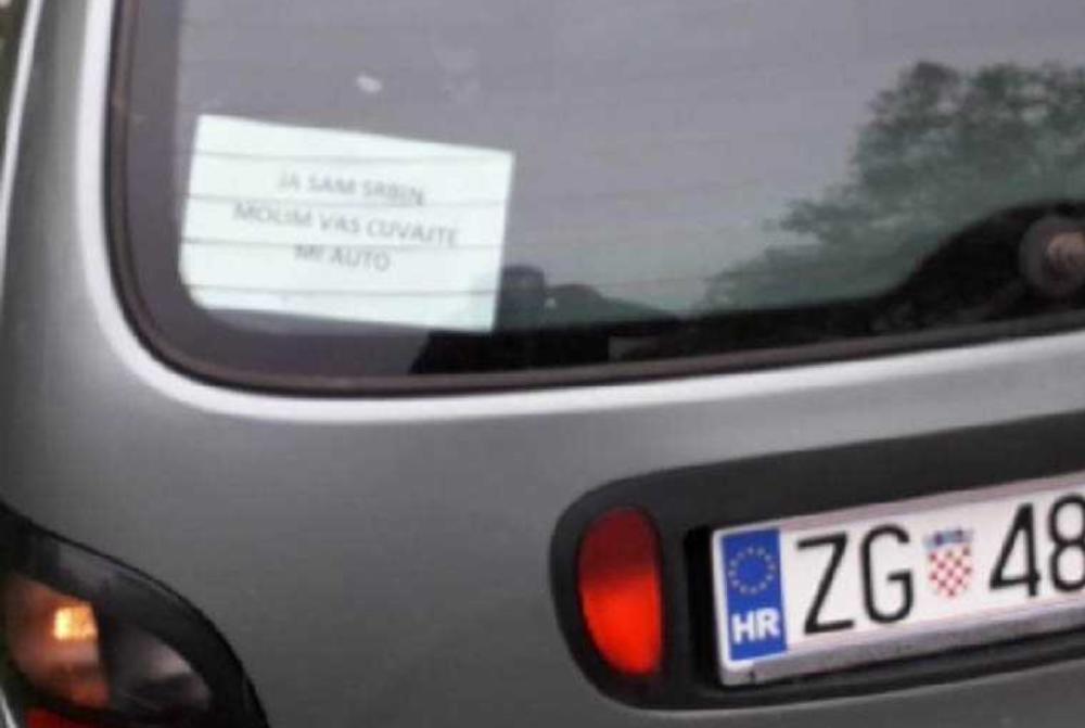 Na fotografiji se vidi automobil zagrebačkih registarskih tablica, a na zadnjem staklu i poruka: “Ja sam Srbin, molim vas čuvajte mi auto”.