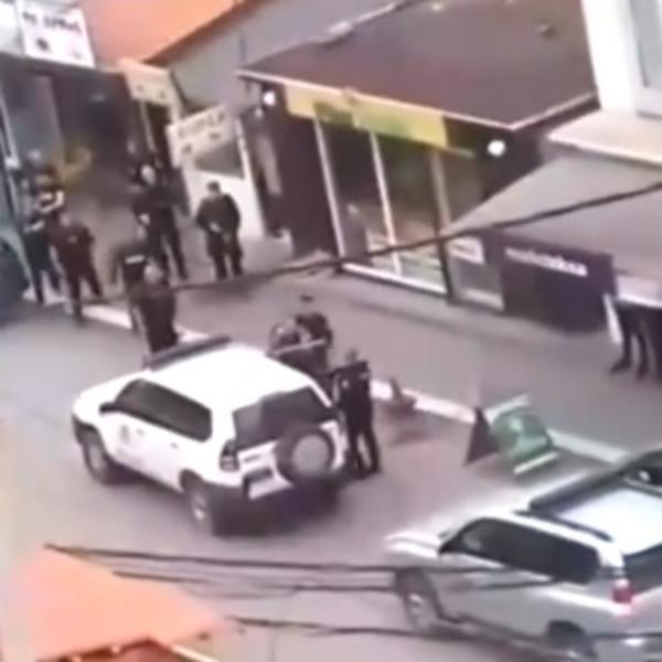 Na slikama se vidi kako 10 pripadnika ROSU, koji su došli u dva terenska vozila odvode jednog Srbina iz mešovito srpsko-albanskog naselja Bošnjačka mahala.