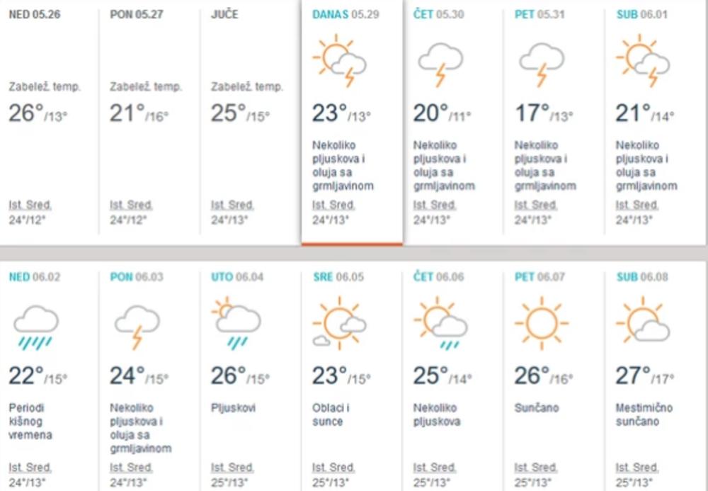 A prema prognozama meteorologa, lošije vreme će se, nažalost, zadržati sve do druge nedelje juna.