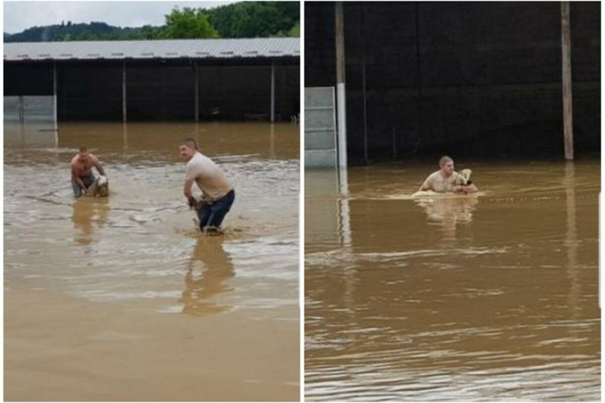 Naime, članovi Udruženja "Ljubitelji prirode" nisu prezali pred bujicom koja je nosila sve pred sobom, već su spasavali stoku iz hladne vode.