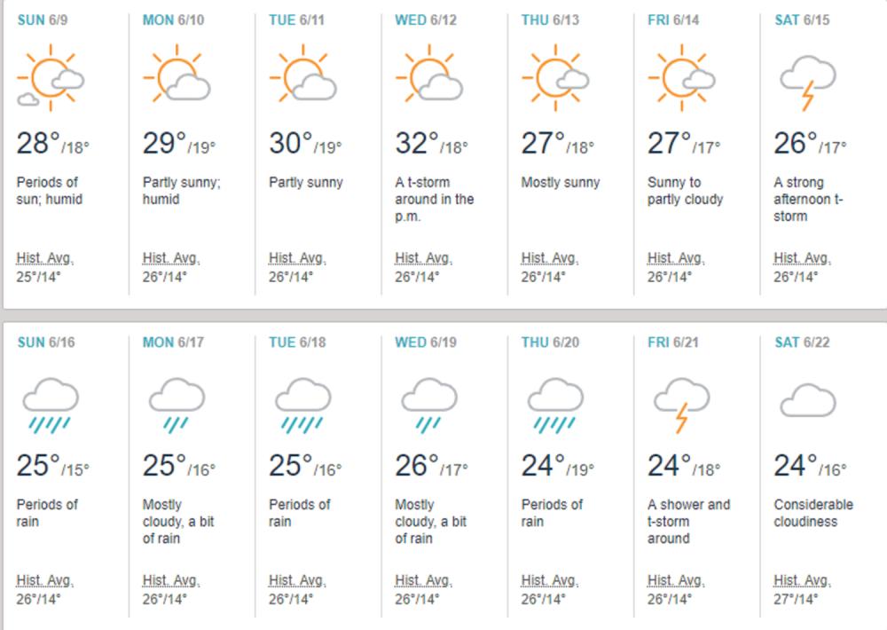 Minimalna temperatura 18, maksimalna dnevna 30 stepeni.