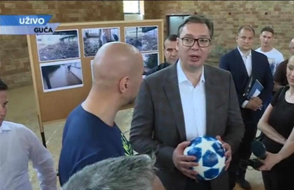Profesor u srednjoj školi "Dragačevo" poklonio je Vučiću fudbalsku loptu za njegovog najmlađeg sina Vukana.