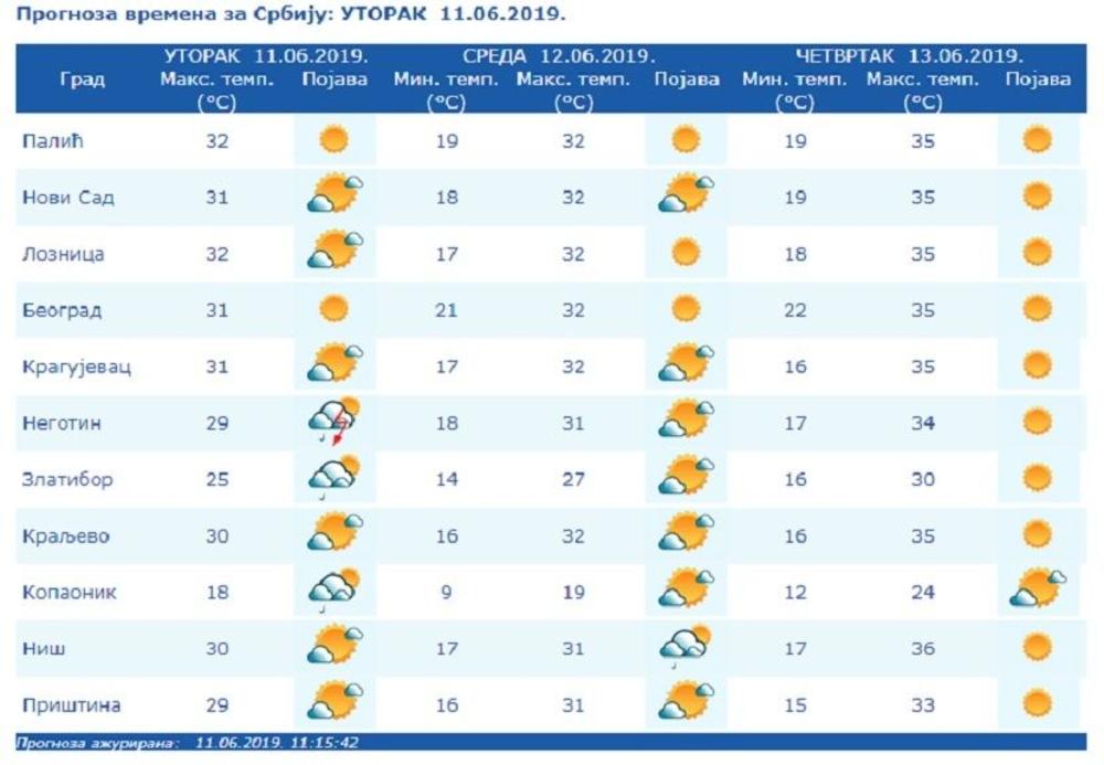 Baš kao što je najavio Todorović, lokalni pljuskovi najavljeni su u nekoliko gradova, a Negotin očekuje jake grmljavine i pored 29 stepeni.