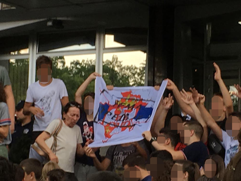 13: 55 - Đaci koji su ostali ispred skandiraju "Kosovo je Srbija".