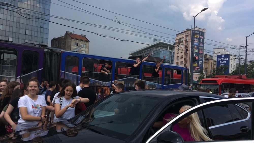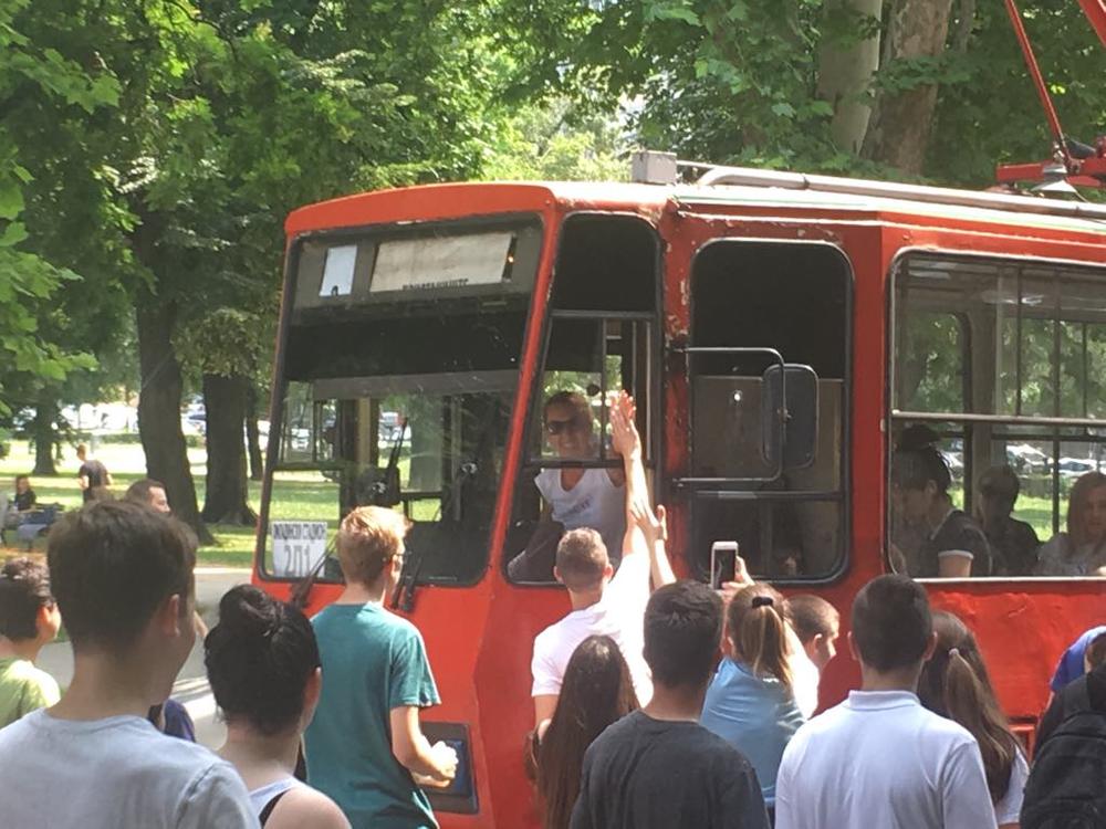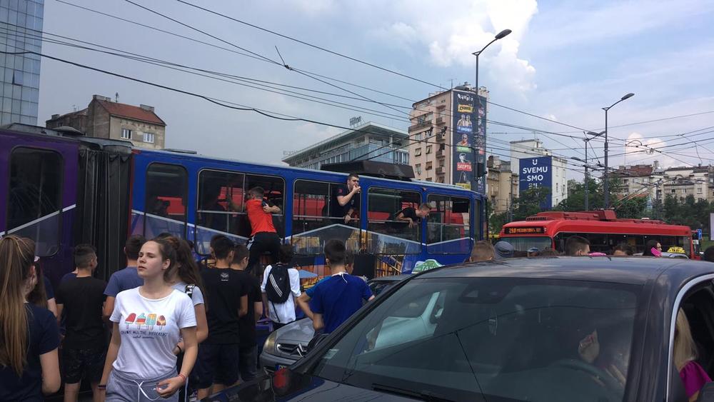 14: 20 - Neki đaci su i ušli u tramvaj koji su zaustavili na Slaviji