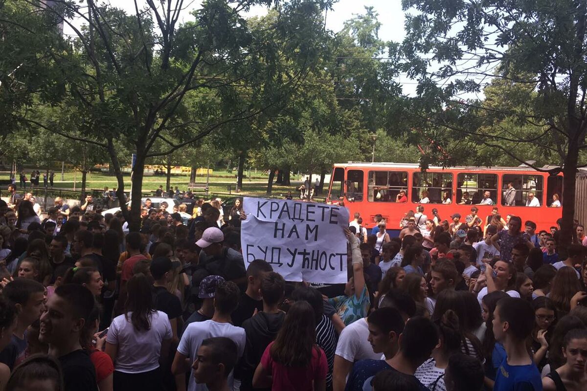 ni nose transparente poput "Nećemo prijemni" i "Kradete nam budućnost"