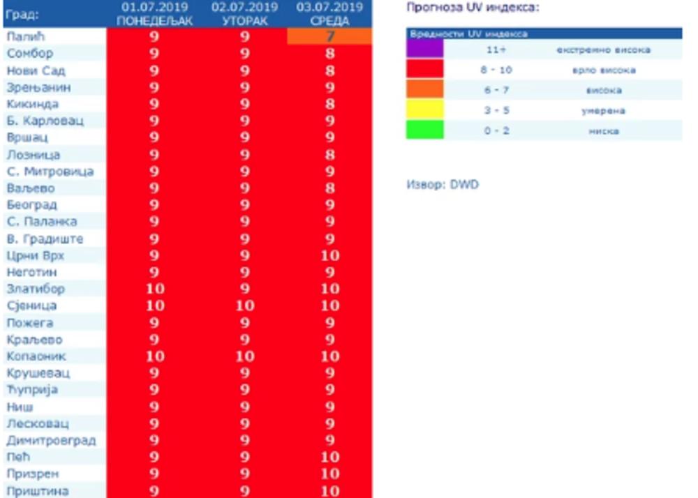 - U utorak će biti još toplije sa temperaturama od 33 do 37 stepeni, ali usled oslabljenog hladnog fronta koji dolazi sa severozapada doći će do pojave nešto jačeg vetra. U nekim delovima Srbije temperatura može dostići i 38 podeok - rekao je Đurić.