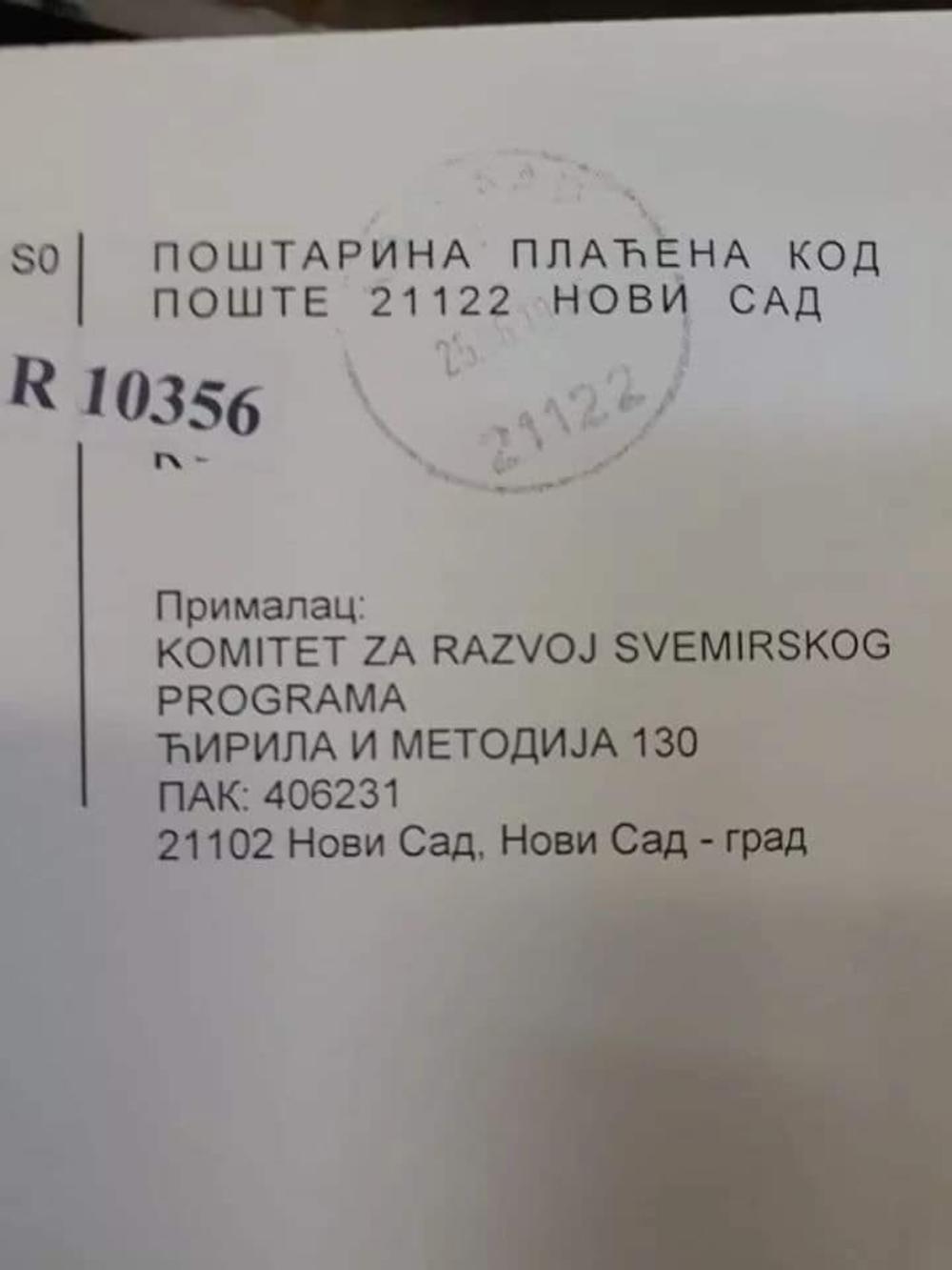 Nakon što se u jednoj grupi na Fejsbuku pojavila fotografija koverte na kojoj je pisalo da je primalac pošte, "Komitet za razvoj svemirskog programa", započeta je lavina komentara. Najviše onih koji su ismejali celu priču, ali i onih koji misle da je u pitanju "fake news".