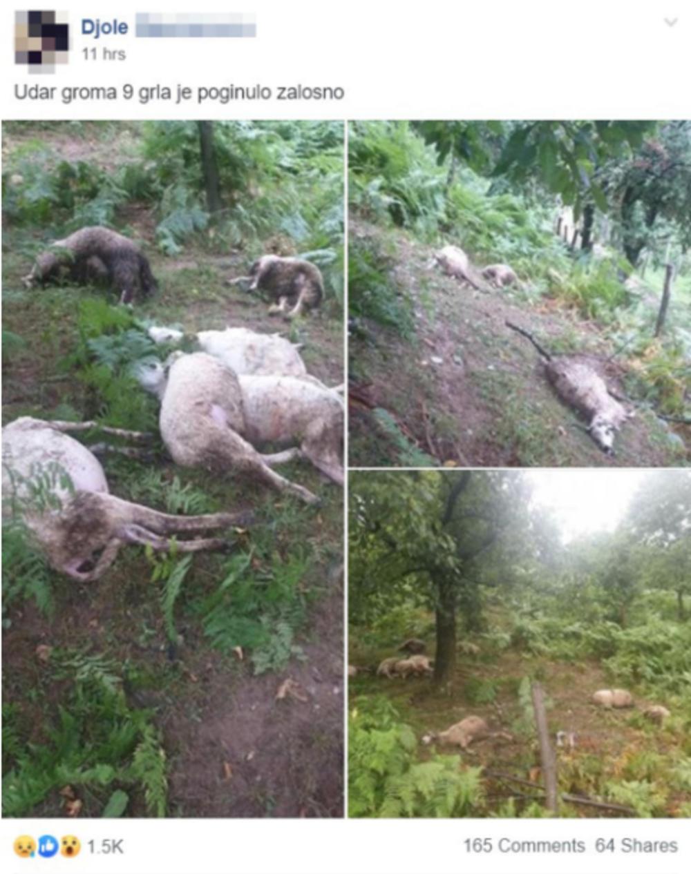 Stado od devet ovčica ubio je grom tokom jučerašnjeg strašnog nevremena, Foto: Printscreen Facebook