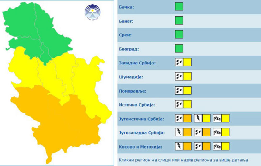 Na snazi je u delu zemlje žuti i narandžasti meteoalarm