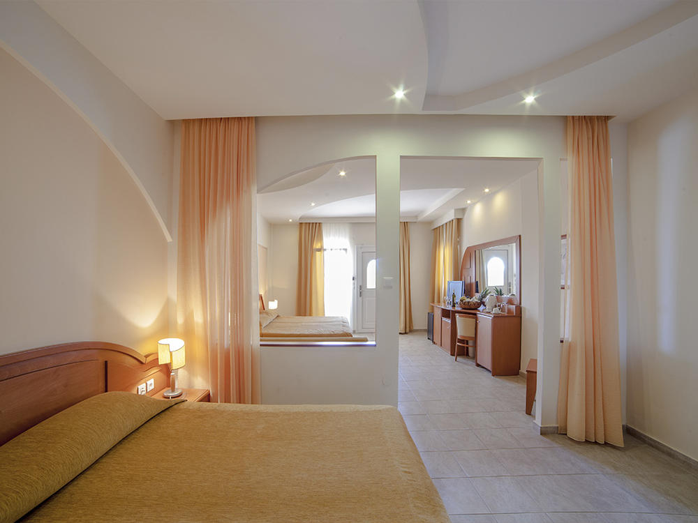 Grand Otel 4* je hotel sa najboljom lokacijom u Haniotiju: smešten je u centru, na samoj plaži, pored gradskog parka. Sastoji se od dve zgrade između kojih je parking. Raspolaže sopstvenom plažom i bazenom i nudi izuzetnu uslugu restorana, bara, snack-bara na plaži, a takođe poseduje i: servis za pranje veša, menjačnicu, rent-a-car, mogućnost bavljenja sportovima na vodi, TV salu, stolove za stoni tenis, wifi internet u javnim delovima hotela. Sobe Grand Otel-a su opremljene radiom, telefonom, frižiderom, klima-uređajem i sve imaju balkon sa pogledom na more ili dvorište. U ovom hotelu možete odsesti uz popuste do 47%, a ukoliko odaberete polazak 26.7, cena za 10 noći na bazi polupansiona za dvoje odraslih i dvoje dece do 12 i 6 godina je 1069€!