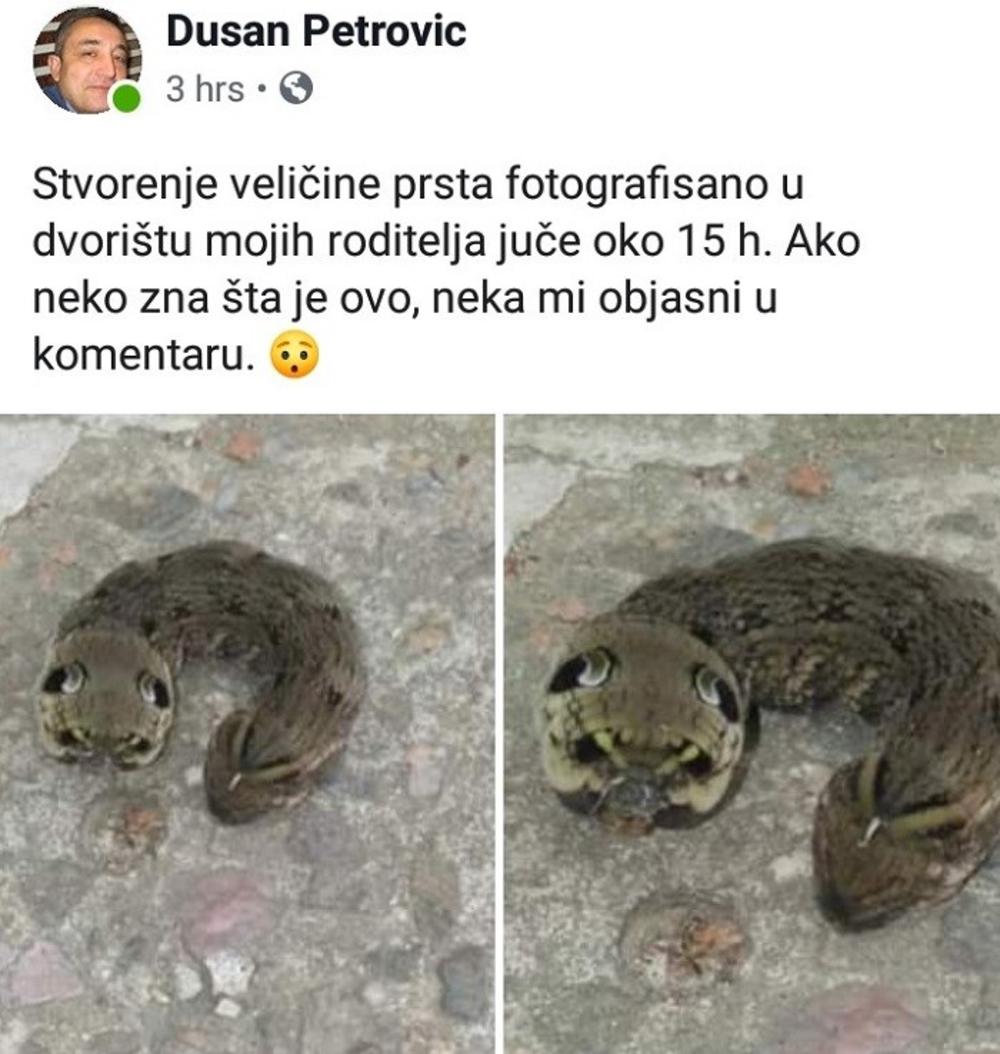 Mali uljez nije bio ništa manje radoznao od svojih "komšija" koje su ostale zatečene njegovim prisustvom. Njihov sin Dejan postavio je fotku na društvene mreže u nadi da će neko, možda, znati o kakvom je stvorenjcu reč.