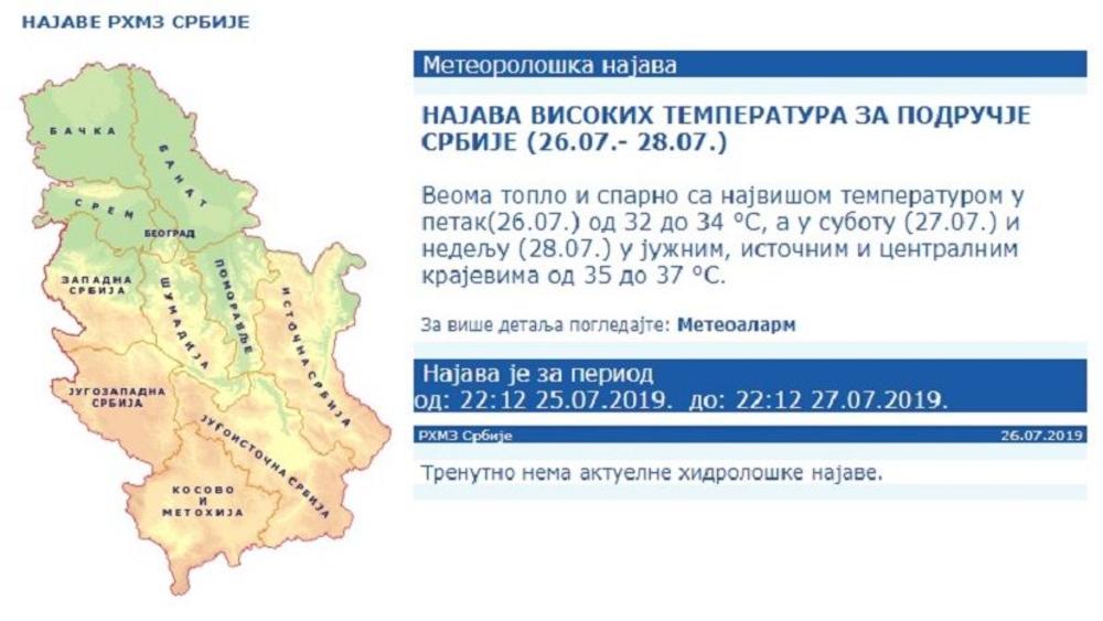 Kako navode, najtoplije će biti u južnim, istočnim i centralnim krajevima Srbije.