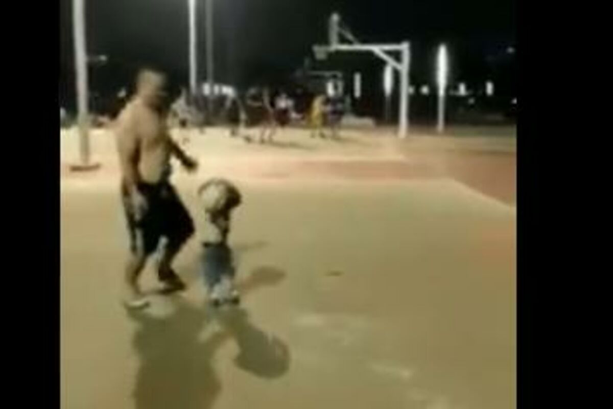 Reč je o tome da otac igra košarku sa svojim sinom, za kog se čini da nema ni 5 godina. Dečak je toliko mali da jedva može da drži košarkašku loptu, a još manje šanse ima da dobaci do koša.