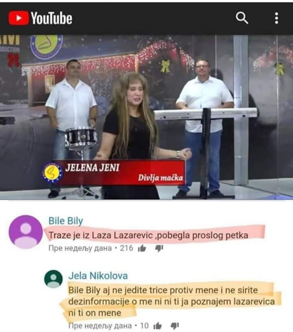 Tako se na jednom videu pesme "Divlja mačka" Jelene Jeni na Jutjubu, pojavio komentar koji je nasmejao mnoge. Zapravo ne samo komentar, nego i odgovor koji je usledio izvesne Jelene Nikolove koja je po svemu sudeći i glavna akterka videa.