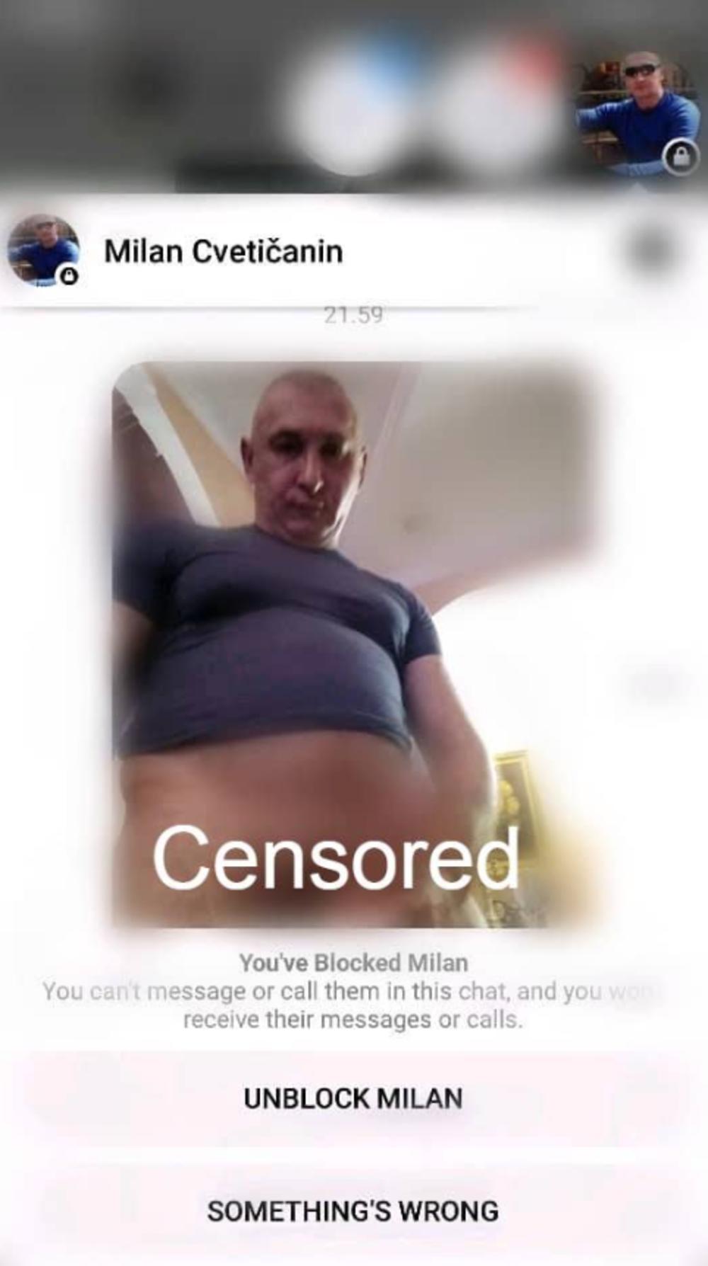 - Ovo je u porukama dobila Darija kao podršku. Ovaj monstrum se zove Milan Milan Cvetičanin......i uleteo je u naše prijatelje jer je tražio savet za nekog njegovog obolelog... Sliku smo zamaglili i cenzurisali, inače je odvratna i poslata u originala - napisala je Gorica.