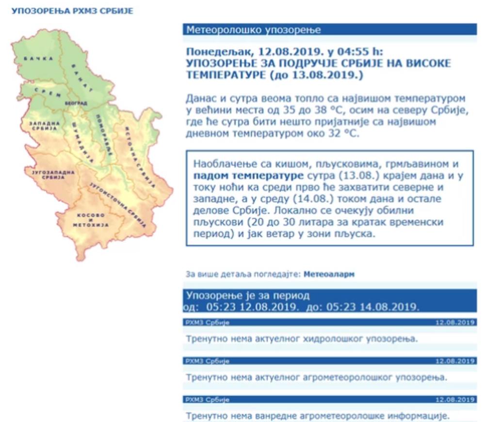 O ozbiljnosti situacije svedoči i upozorenje Republičkog hidrometeorološkog zavoda na visoke temperature koje će biti na snazi do sutra.