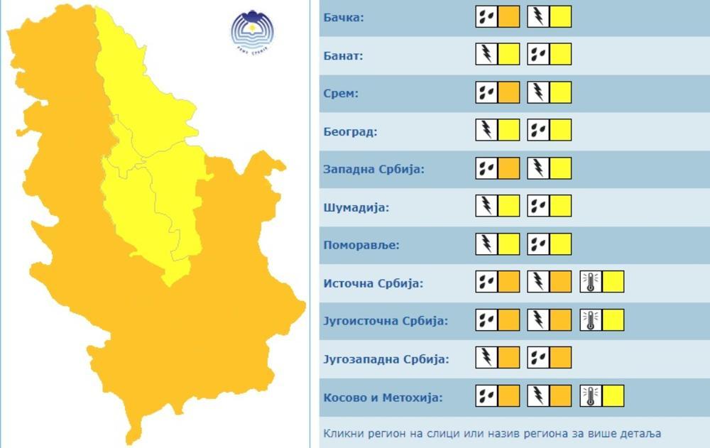 Zbog toga će u nekim delovima Srbije na snazi biti narandžasti meteoalarm.