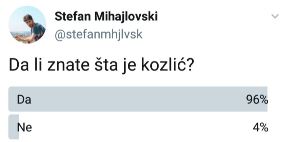 U anketi koju smo sproveli, ispostavilo se da svega 4% ispitanika nije znalo šta je kozlić, te verujemo da se radi o mlađim generacijama.